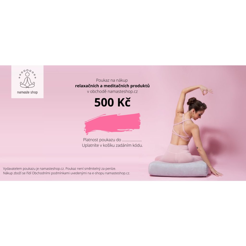 Každý poukaz má svůj unikátní kód. Hodnota uvedená na poukazu bude odečtena z ceny nákupu při zadání unikátního kódu z poukazu v nákupním košíku obchodu namasteshop.cz. Poukaz je platný 1 rok od data nákupu.